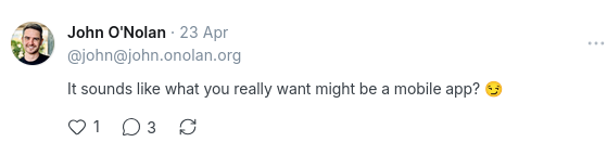 I asked Johnathan O'Nolan, one of Ghost's founders, about the possibility of implementing something like this, and he countered with the idea that maybe Ghost should just have a dedicated mobile app for the social stuff. Now, I don't expect or demand anyone from Ghost to implement this, but it would seem like having this capability would only strengthen their story for social media teams to consider using that part of Ghost regularly.
