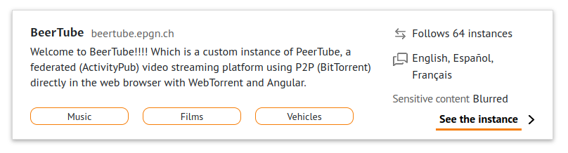 When things get really rough, and you're hurting for content, it's sometimes not a bad idea to just look up some instances and see what's on them. The PeerTube project offers two entrypoints for parsing the instance list - the list itself, and the much more user-friendly Instance Picker.